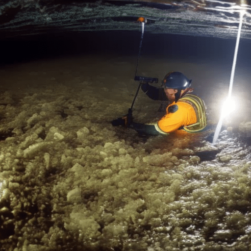 An image showcasing a professional water damage inspector meticulously examining a flooded basement, armed with advanced equipment like moisture meters and infrared cameras, highlighting the crucial role of water damage inspections