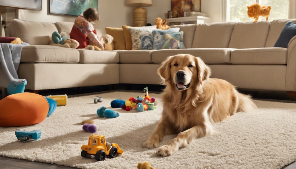When combined with pet grooming techniques, such as regular brushing and nail trimming, you'll minimize the amount of hair and dander that settles into the fibers. Additionally, regular cleaning helps to neutralize pet odors that can linger in carpets and affect the freshness of your home. Don't forget that stains and odors from pet accidents need immediate attention. Using pet-safe cleaning solutions, like a mixture of white vinegar and water, can help you tackle these issues before they become permanent. Ultimately, regular carpet cleaning extends the lifespan of your carpets, keeping them looking fresh while creating a healthier home for everyone. Prioritizing this aspect of home care is a loving step toward ensuring a safe, clean environment for your family and pets alike.